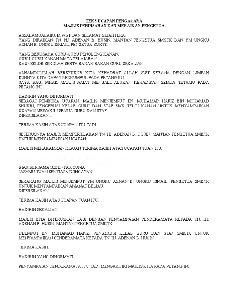 Teks Ucapan Pengacara Majlis Perpisahan Dan Meraikan Pengetua Baru Pdf
