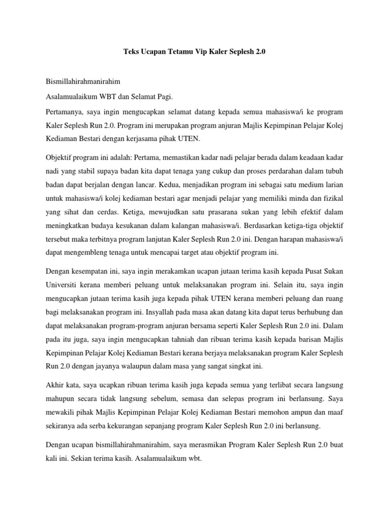 Teks Ucapan Tetamu Vip Kaler Seplesh 2 Pdf