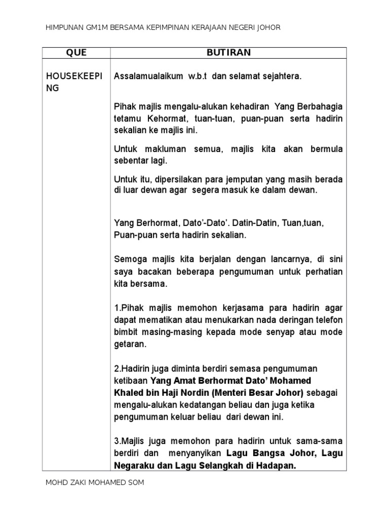 Teks Ucapan Y Bhg Naib Canselor Sempena Majlis Perasmian Program Bakti Siswa Siri 2 Utem Pdf Free Download Tentatif program viewpengerusi memaklumkan kepada ajk protokol supaya menyediakan aturcara pentadbiran dan teks pengacara majlis bagi kegunaan pada hari kejadian. DATUK SERI MOHD ZUKI BIN ALI TIMBALAN KETUA SETIAUSAHA KANAN JABATAN PERDANA MENTERI BERSEMPENA PERHIMPUNAN BULANAN BULAN JANUARI 2019 TARIKH. Menjadi Fasilitator dalam mengendalikan dan menyediakan modul 1.