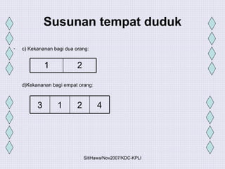 Susunan tempat duduk 11. Penyusunan tempat duduk adalah mengikut peraturan kebiasaan dan adat yang telah berjalan sekian lama dan akan.